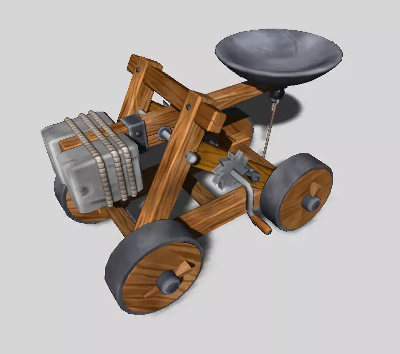 Old catapult model with separated parts for animation.Color anormal and specular textures(2048*2048 pixels)