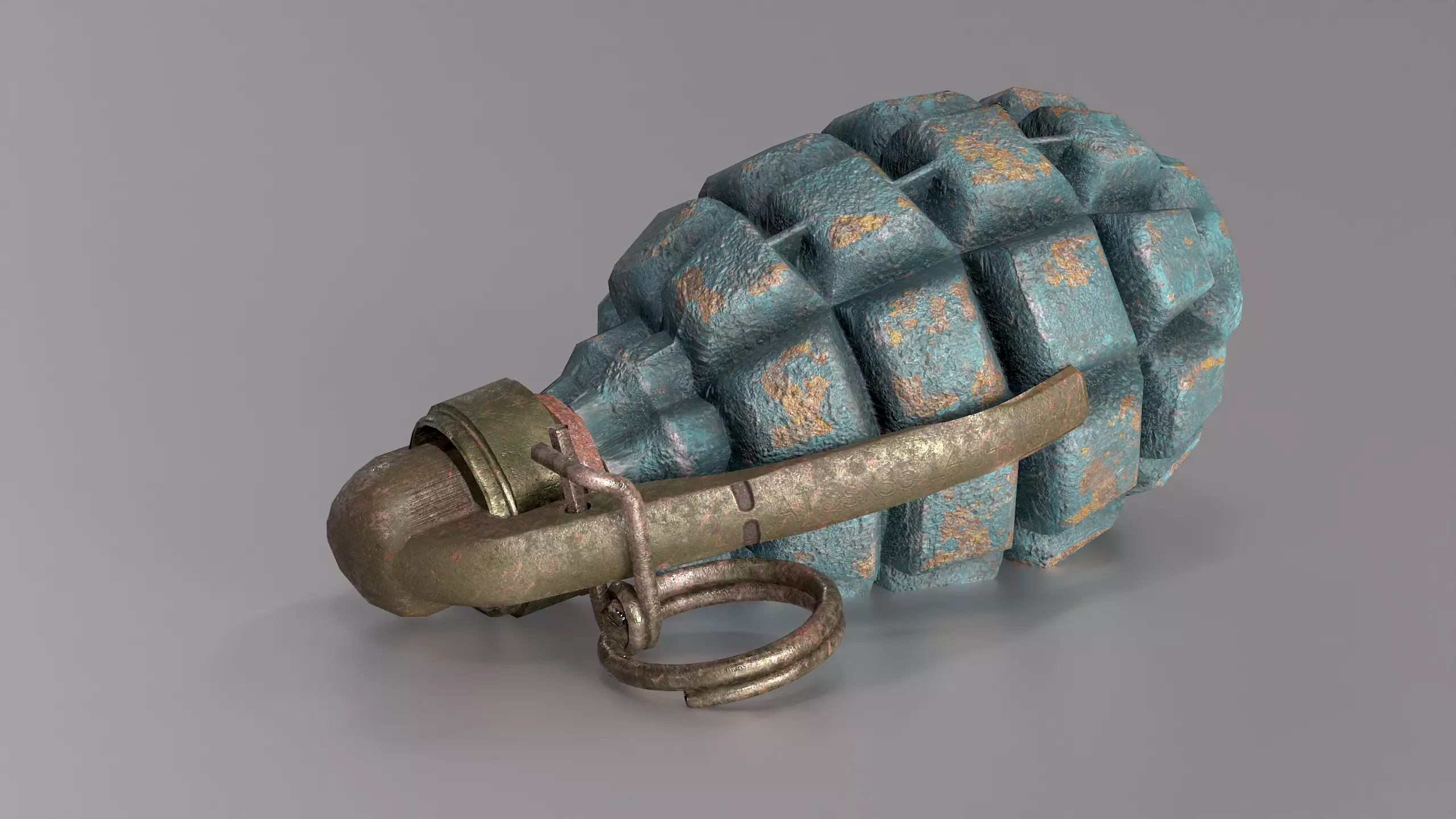 High-detailed, low-poly, game-ready, 3d model of old, rusty and dusty ganade from ww1 french F1 granade.textures 4K
