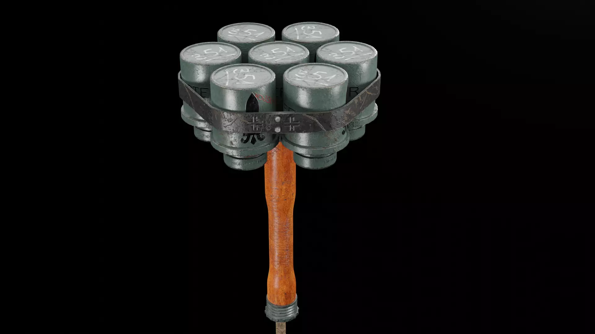 3D model of old 7 Head hand anti tank grenade. You will get full set of 4K textures, textured in high detail in Substance Painter. Non owerlapping UV islands. Optimized mesh.25k Verts, 24,5k faces.Textures included: Color, Roughness, Normal, Metalic, Height, Mixed AO