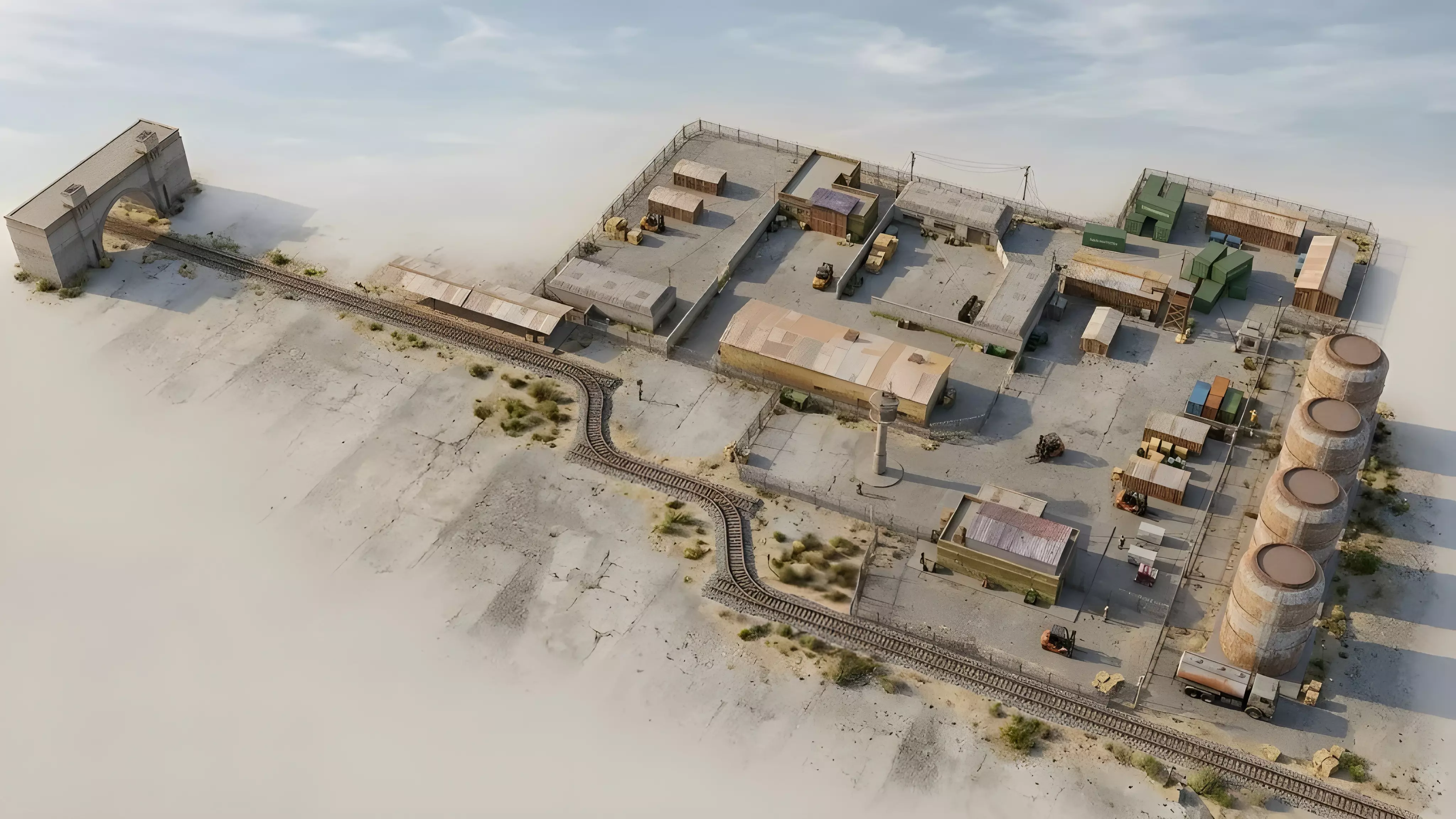 Military Base Level Environment Pack – Barracks, Workshop, Warehouse, Watch Towers, Railway Lines, Tunnel and Props