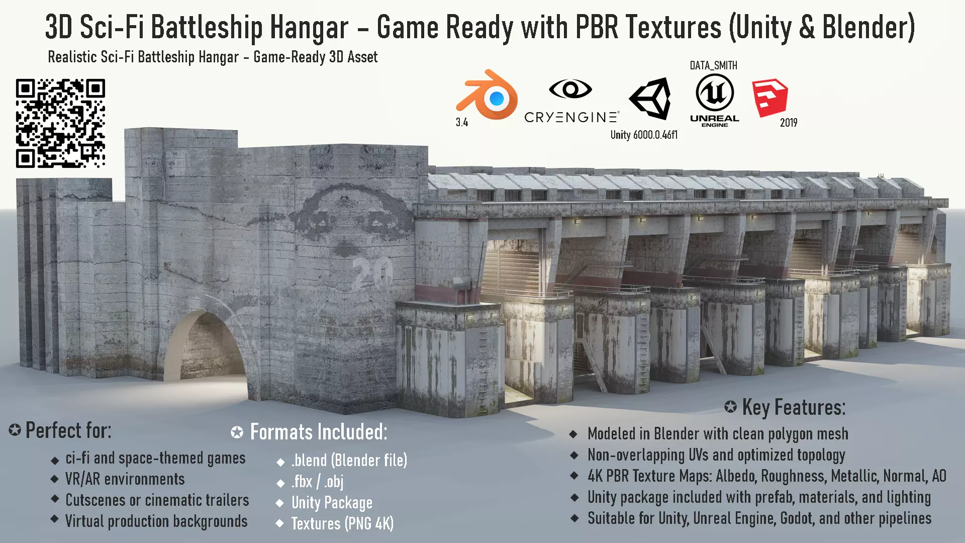 Uses Physically Based Rendering materials, which give the model realistic lighting and surface properties.