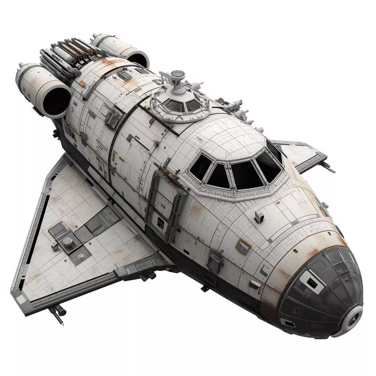Tagsspace shuttle delta wing transport ship scifi futuristic realistic industrial spaceship vessel freighter vehicle asset prop fleet exploration weathered rust starship craft