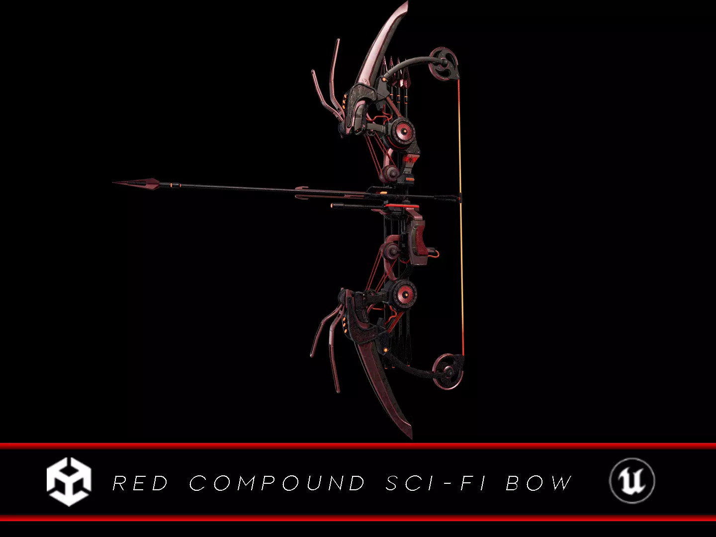 Red Sci-Fi Compound Bow 3D Model. This model contains the Red Sci-Fi Compound Bow itself