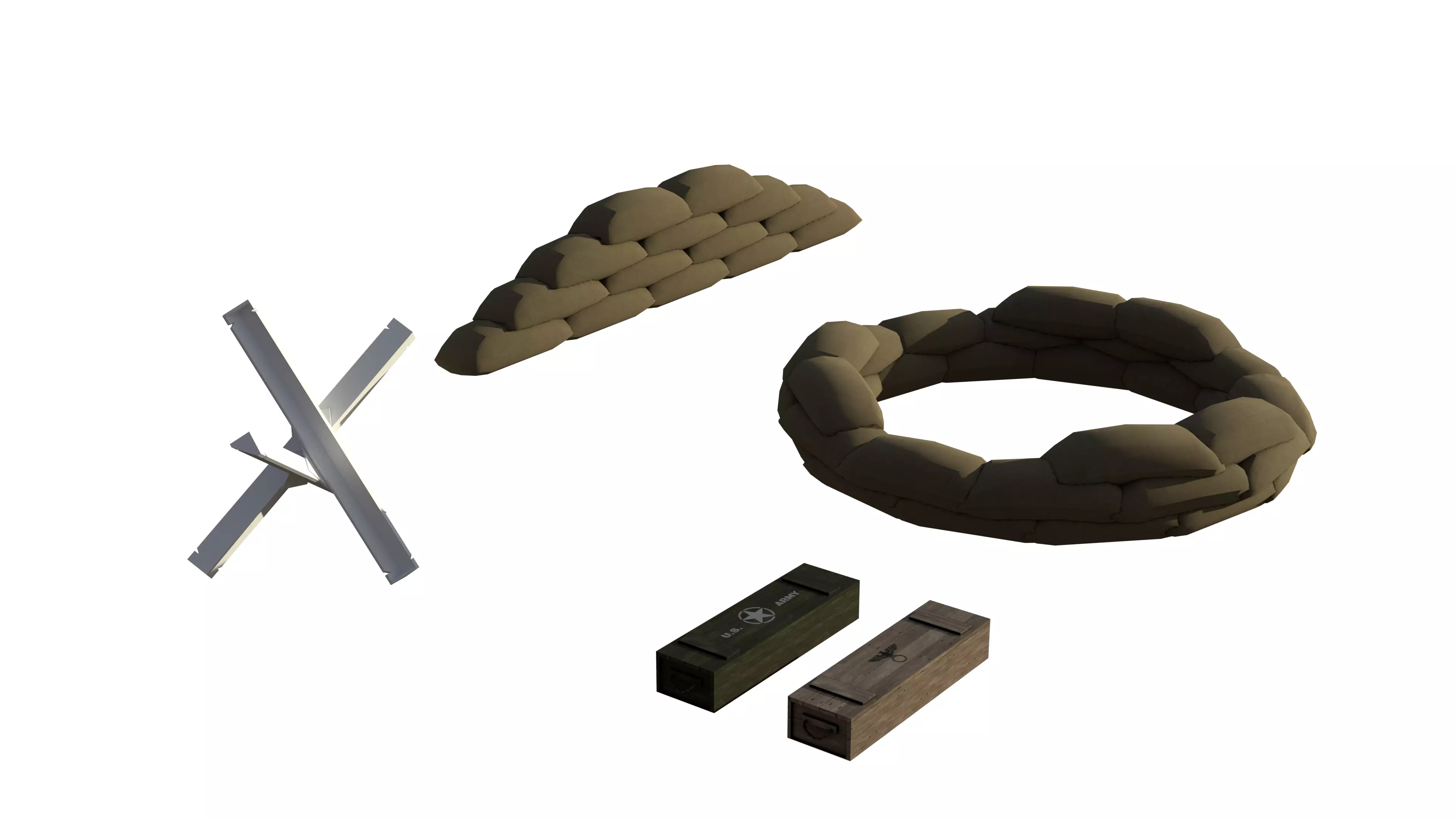 Ww2 props for roblox. Germany weapons crate, usa weapons crate, circle sandbags, straight sandbags, tank trap.