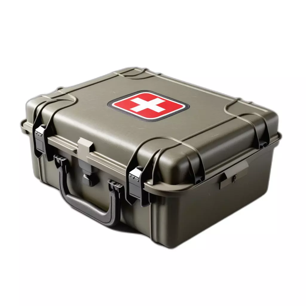 This is a highly detailed 3D model of a rugged, military-grade first aid kit case, perfect for various digital projects. The model features a durable, olive-green exterior with robust latches and a sturdy handle, indicating its strong construction and portability. A clear red cross symbol on the top identifies its purpose as a medical supply container. This versatile asset is ideal for game development, serving as an interactive prop, inventory item, or environmental detail in survival, military, or outdoor adventure games. It is also suitable for architectural visualization in emergency, industrial, or wilderness settings, adding realism to your scenes. Digital artists can leverage this model for creating compelling renders, illustrations, or cinematic sequences. Optimized for real-time applications like AR/VR experiences, the model boasts clean topology and efficient polygon count, ensuring smooth performance. It comes fully UV unwrapped with professionally crafted PBR textures, providing realistic surface details such as subtle wear, reflections, and material properties. Supported file formats include GLB, OBJ, STL, ABC, DAE, FBX, USD, and PLY, offering broad compatibility across different 3D software and engines. Whether for static renders or dynamic environments, this first aid case is ready to be integrated into your next project.