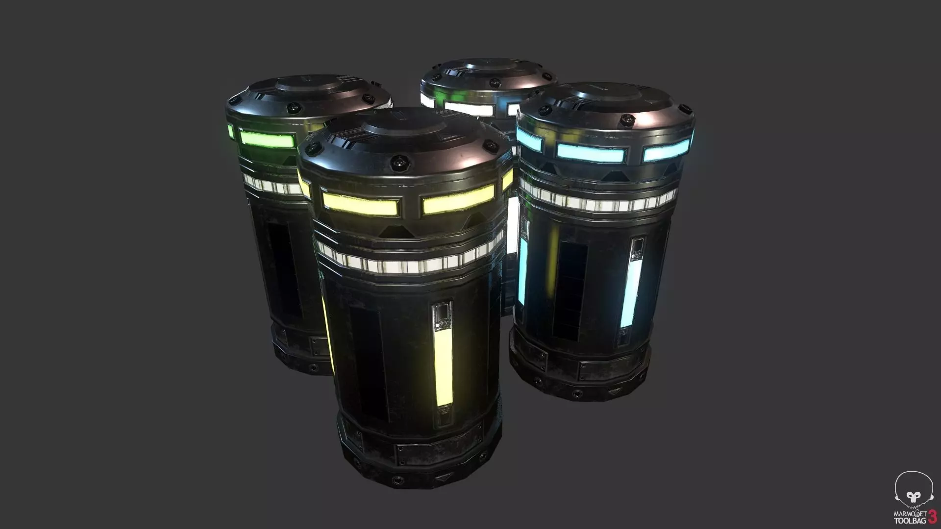 A Sci-fi Power Cell ready for a video game as an ammo or a trigger object ready for a Game Engine has 720 Verts, 632 Polys and 1264 Tris it is named one piece like I show in the preview include Diffuse, Metal, Normal and Emissive Map as a plus 4 colors of the emissive map like it shows in the renders each size of the map is 2048 x 2048 you can resize it.
