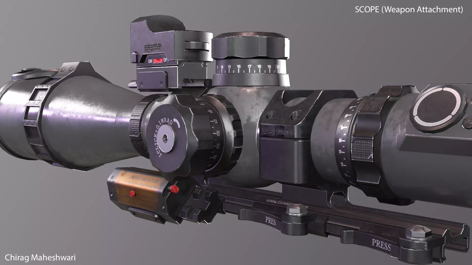 • The Laser part and red dot are separated to remove/plug any attachment if required by the rigger/animator