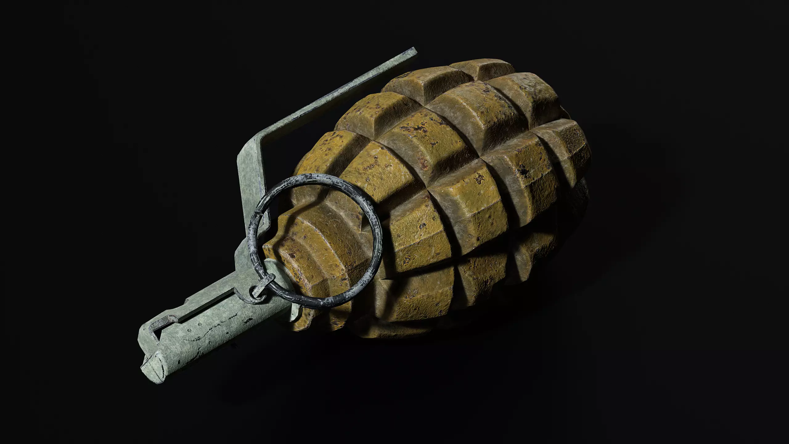 High-detailed game-ready 3d model of a slightly dusty, worn, and rusty soviet F1 grenade optimazed for Unreal engine 5 1 Uvi textures PBR 4krender marmoset toolbag