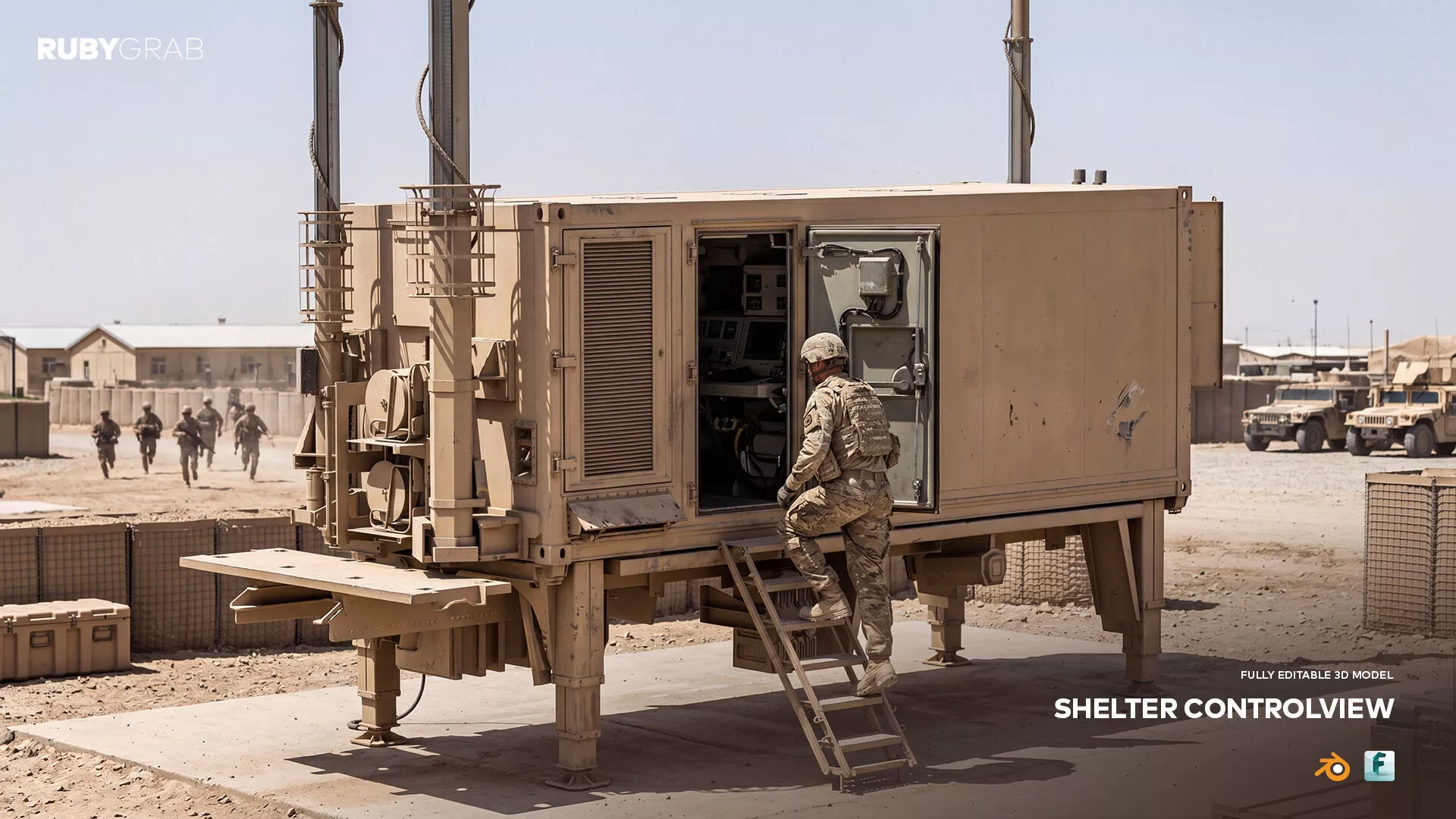 Shelter Control View is a highly detailed shelter control unit designed for tactical and operational use. It features secure construction, functional components, and adaptability for demanding environments. Perfect for military or field logistics applications.