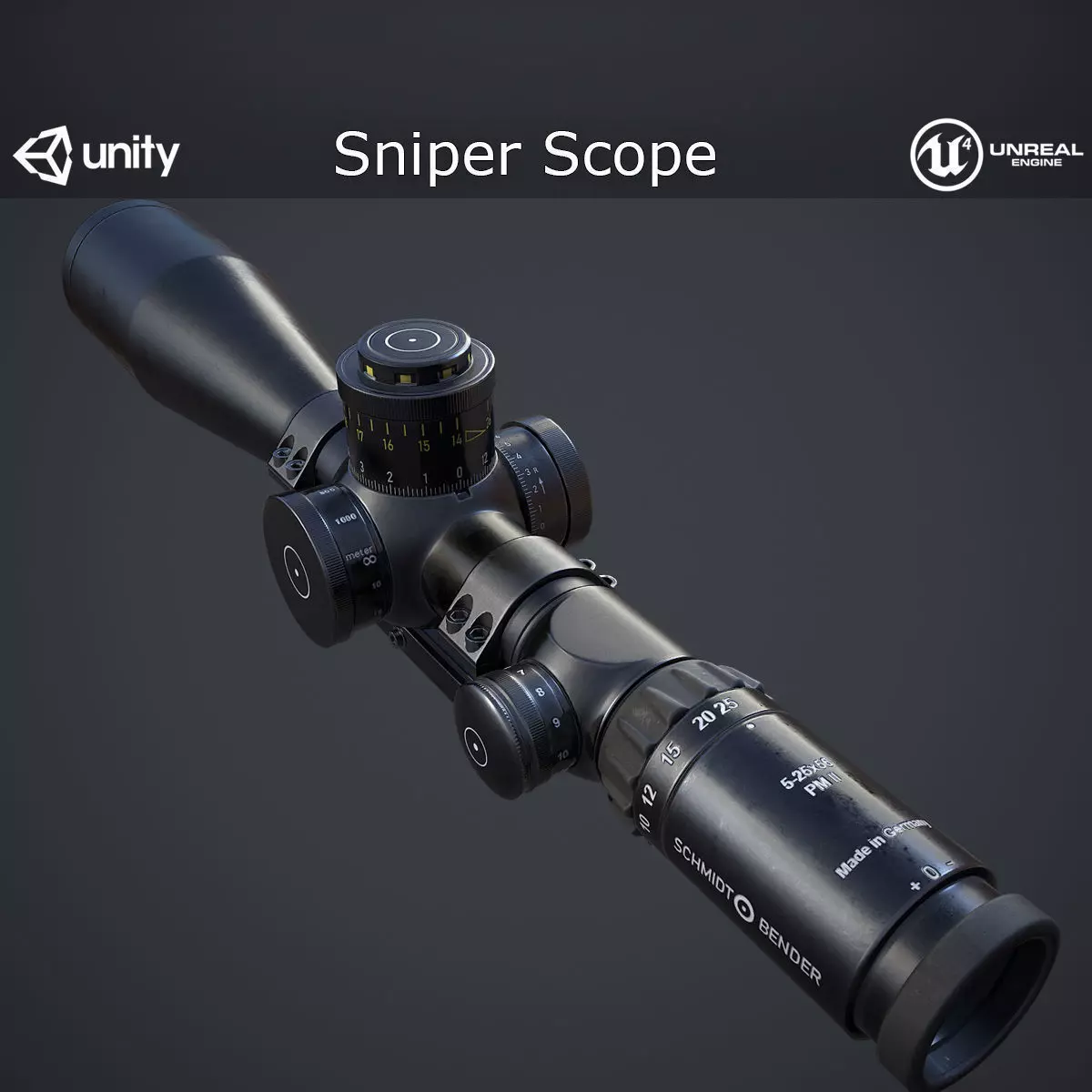 • Textures for the scope lens and reticule, including opacity maps.