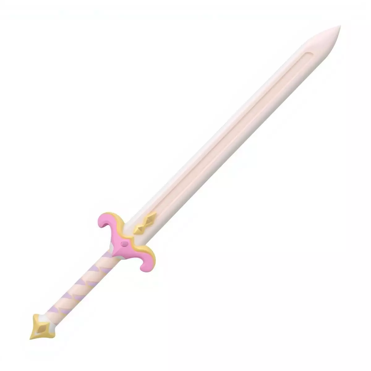 Tagsmagic sword, fantasy weapon, stylized, kawaii, cute, pastel, anime prop, 3d model, game asset, magical girl, rpg item, whimsical, low poly, toy sword, pink, white, cartoon, 3d prop, fantasy asset, hero blade