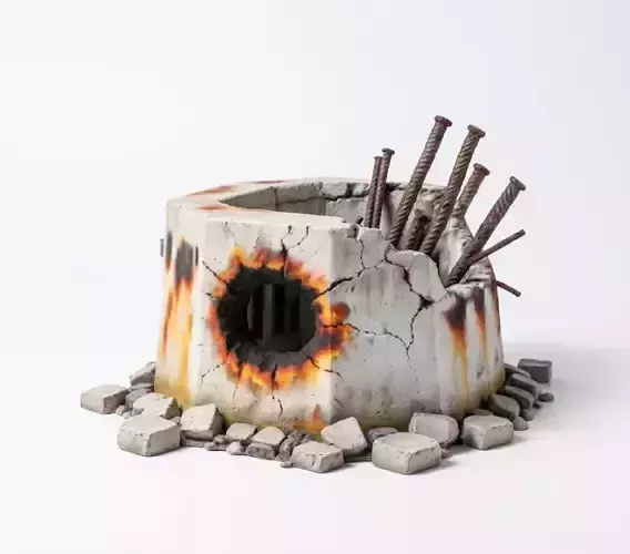 Tags Bunker Pillbox Concrete War Destroyed Ruin Rebar Rusty Battle Apocalyptic Military Defense Shelter GameAsset Prop Weapon Damage 3DModel Stylized