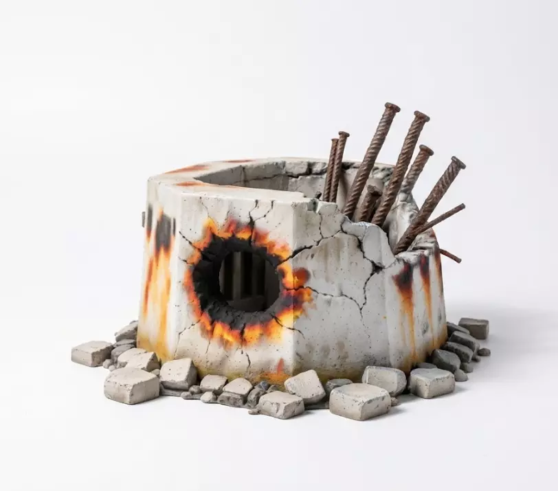 Weathered Texture: High-quality concrete finish with realistic burn marks, rust drips, and wear.
