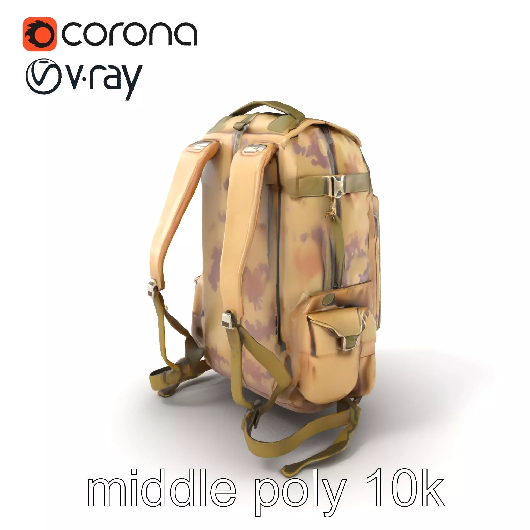 Each model has 3 levels of detail: low-poly, middle-poly, and high-poly, which allows for the use of this model in production rendering (such as 3ds Max, Maya, Cinema4D, Blender, Vray/Corona/Cycles and all others), game engines (Unity and Unreal compatible), and interactive presentations, providing a choice of detail based on the LOD System principle. This backpack model is perfect for survival and tactical game scenarios, visualizations, and military training simulations. The model's textures are PBR, including Diffuse, NormalMap, and reflection/roughness/metallic maps, suitable for any modern rendering engine. All models are accurately unwrapped and have no overlapping UVs. The textures are 4096x4096 in size. If you liked this model, please leave a like and a comment.