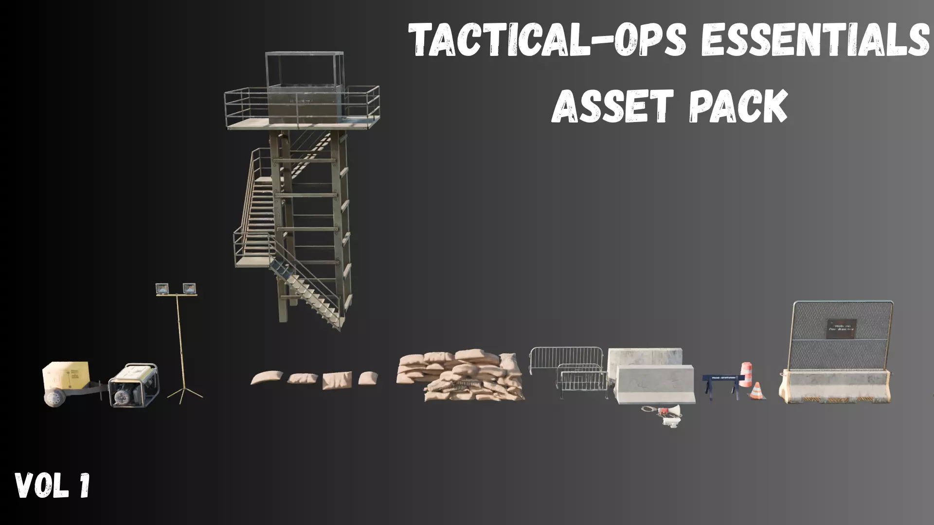 Tactical Ops Essentials Asset Pack – Vol 1A powerful 3D asset collection designed for creating realistic military, police, and checkpoint scenes in your games, animations, or cinematic environments.
