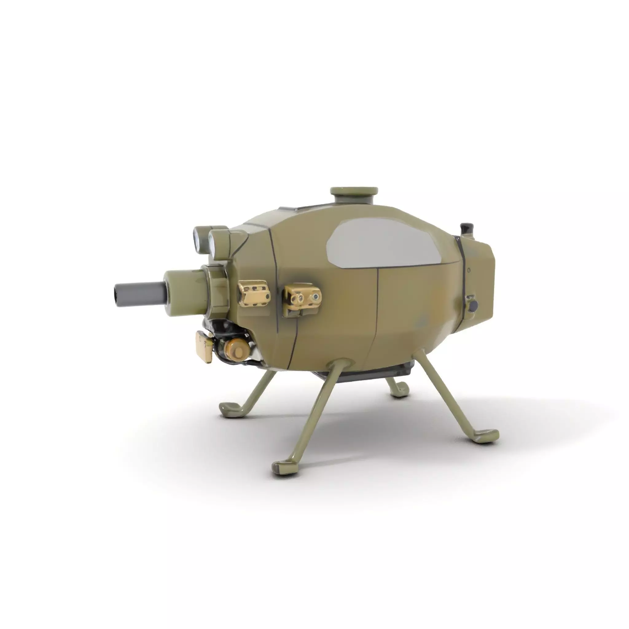 This tactical surveillance drone model features a robust, military-inspired design with an olive-green finish, perfect for realistic military simulation or tactical video games. Each model has 3 levels of detail: low-poly (1000 triangles for mobile), middle-poly (10,000 triangles for environment), and high-poly (100,000 triangles), which allows for the use of this model in production rendering (such as 3ds Max, Maya, Cinema4D, Blender, Vray/Corona/Cycles, and all others), game engines (Unity and Unreal compatible), and interactive presentations, providing a choice of detail based on the LOD System principle.