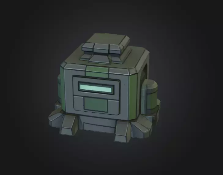 Built with bold outlines and simplified geometry, the asset fits seamlessly into toon-style or semi-realistic art directions. Details such as structural braces, color-blocked plating, and a soft glowing interface add visual interest while keeping the model lightweight and game-ready. The modular silhouette allows it to function as a loot box, storage unit, supply cache, crafting material container, or interactive pickup object.