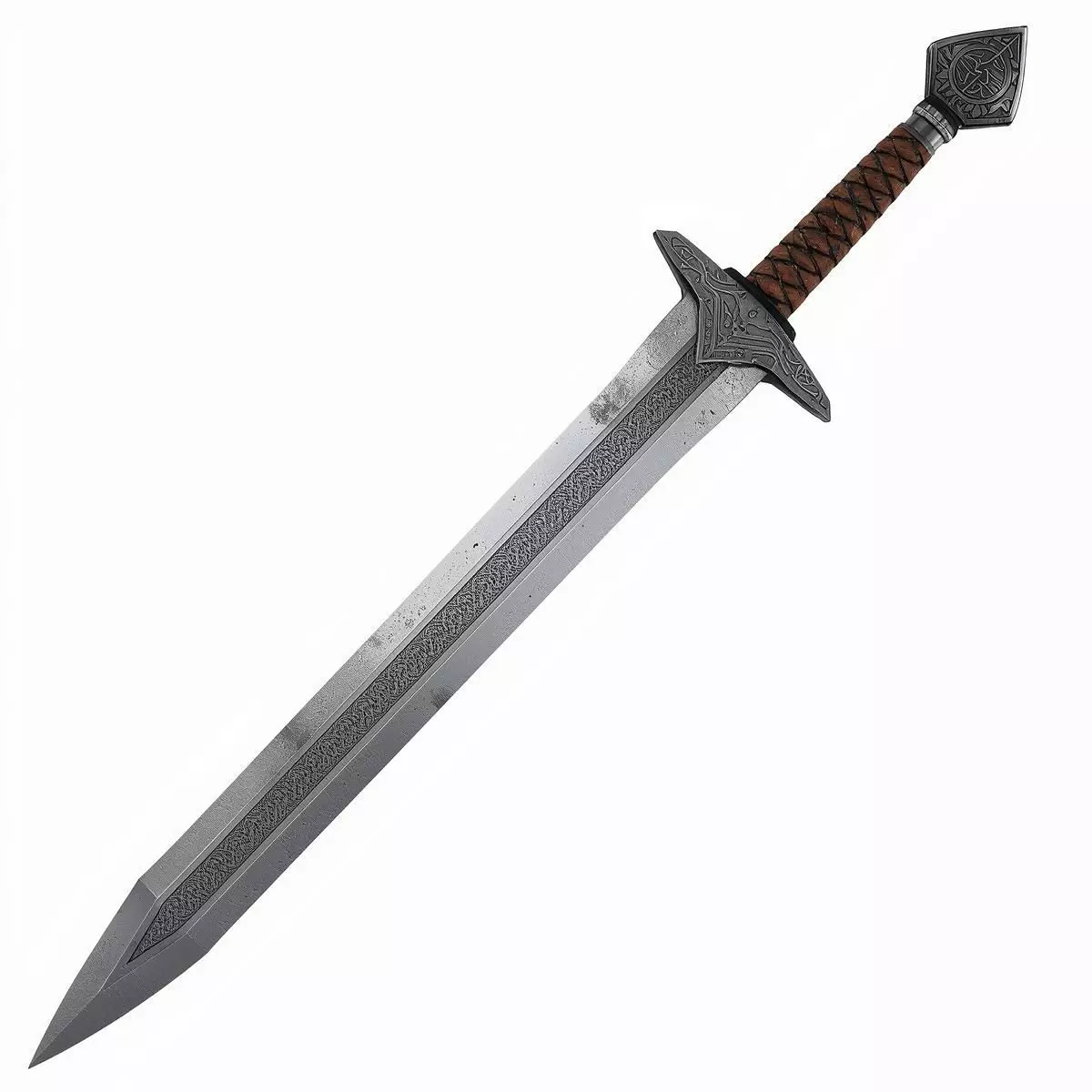 Tags3d model viking sword iron blade game ready weapon medieval armament nordic engravings leather grip realistic texture historical weaponry warrior gear weathered metal balanced sword rustic weapon aged materials digital sculpture pbr materials adventure asset combat equipment