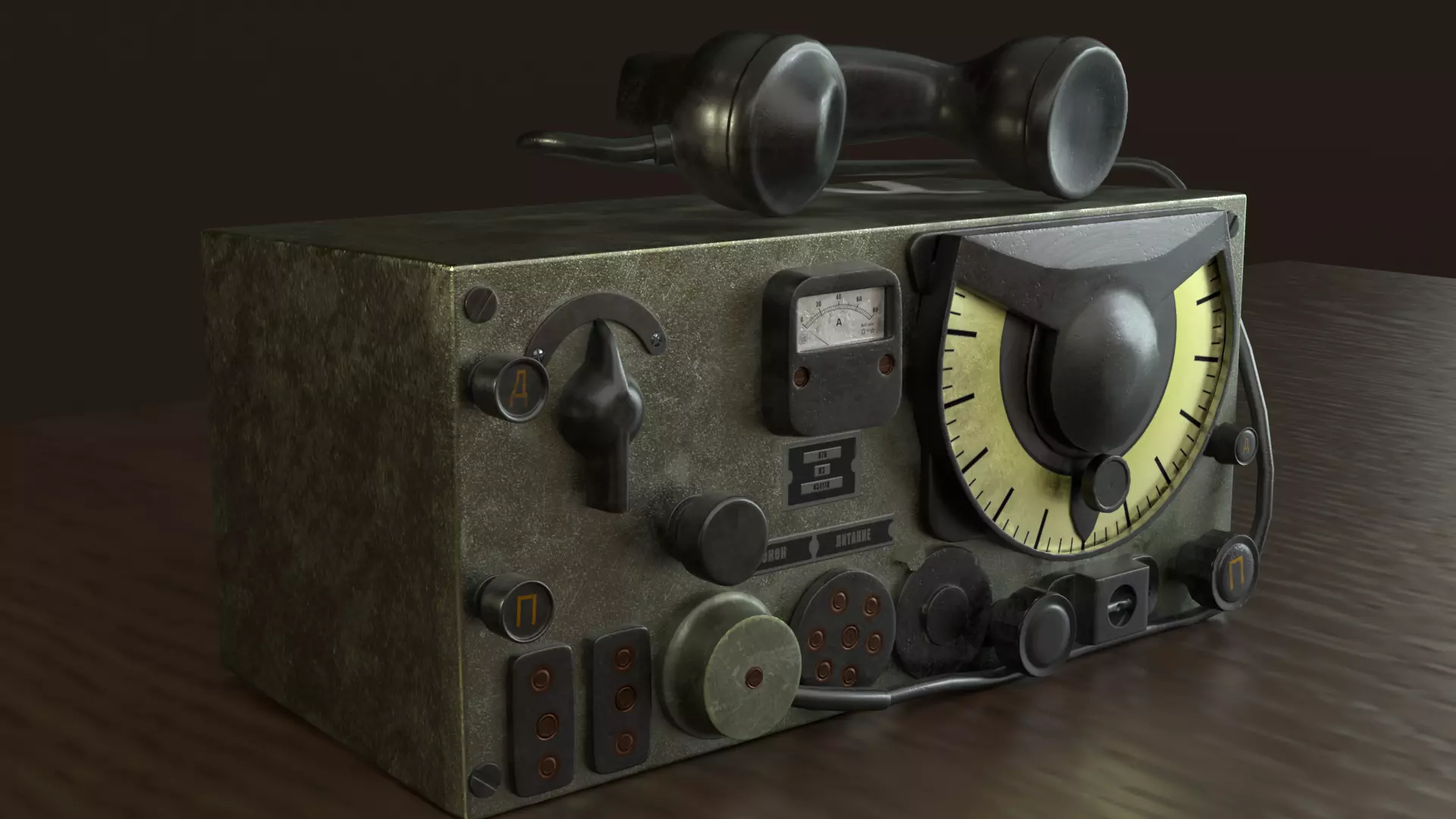 3D model of an old military radio, expertly crafted in Autodesk Maya and detailed with Adobe Substance Painter. This piece replicates the design and textures of a vintage WWII communication device on a human scale, making it a perfect blend of history and realism. The final render, done in Adobe Substance Stager.