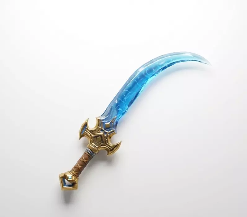 Description: Strike with the fury of the storm gods using the Volt-Edge Khopesh. This weapon serves as the perfect companion to the Cyber-Anubis Guardian, blending ancient Egyptian lethality with futuristic energy technology. Designed for sci-fi fantasy RPGs or mythical action games, this blade reimagines the traditional sickle-sword. The steel edge is infused with a volatile blue plasma core that arcs with electricity, capable of searing through armor and flesh alike. The hilt retains the opulence of the pharaohs, crafted from gold and wrapped in leather, proving that advanced tech doesn't have to sacrifice regal style.