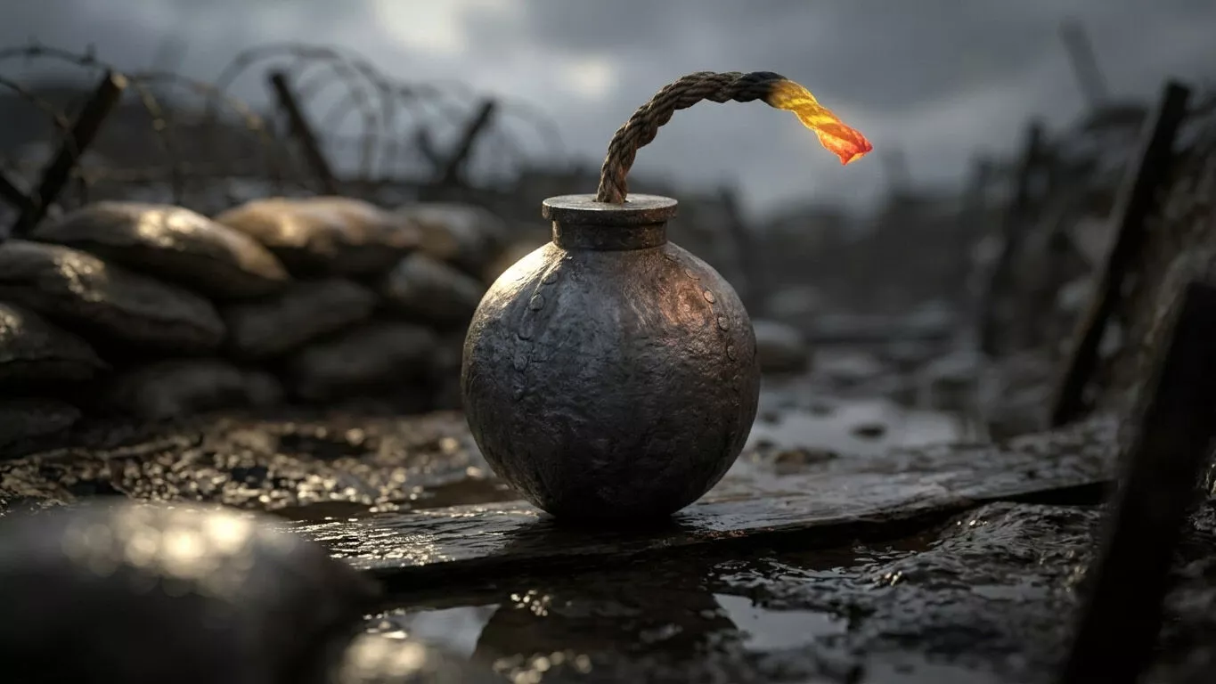A 3D model of a round cartoon bomb. The wick has two states, one natural, the other alight and glowing. Low-poly PBR Metal-rough workflow used. All maps/texture are included.