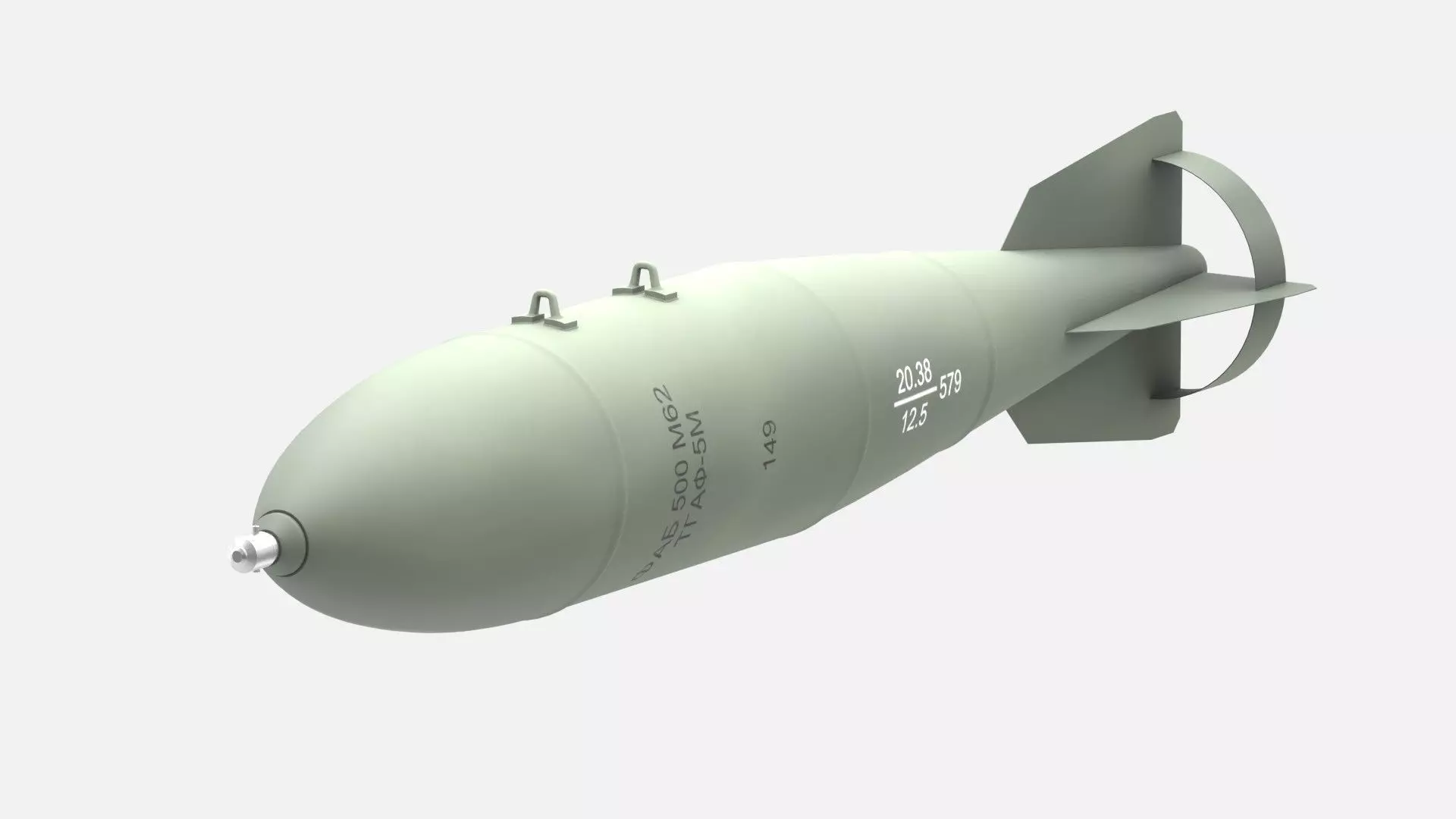 Realistic and detailed 3d model of Russian FAB-500 m62 bomb made using blender 2.79. 2K textures Included maps: Albedo map (2k) ambient map (2k) metalness map (2k) roughness map (2k) bump map (2k)