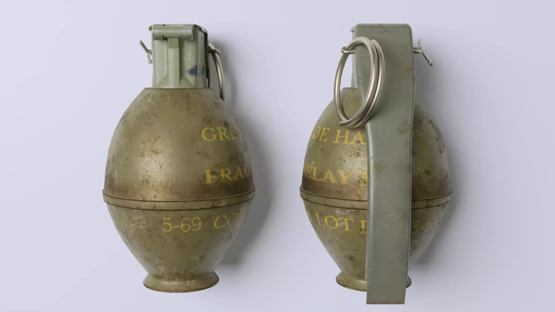 This model is an M26 fragmentation hand grenade that is close to real size. It modeled, UV mapping in blender texturing in substance painter and bake and Rendered image in Marmoset Toolbag.