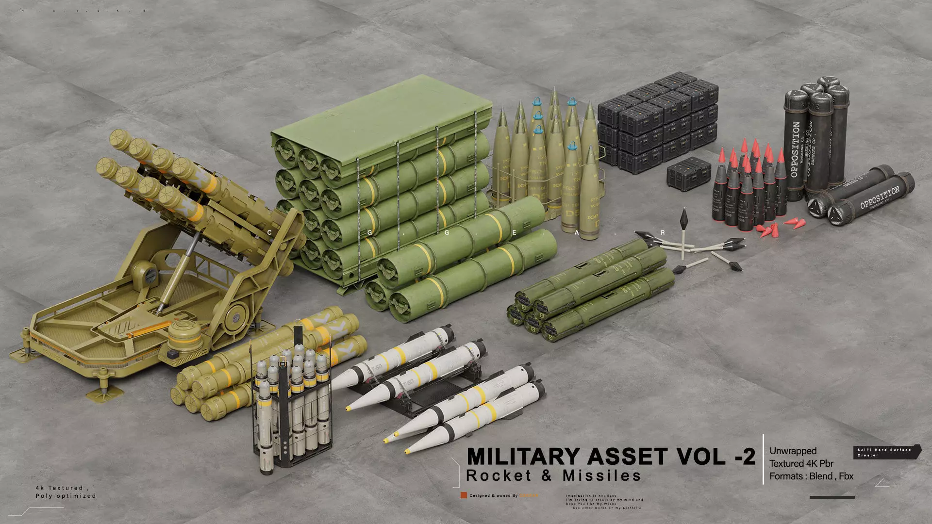 Elevate your military or sci-fi project with this high-quality Military Asset Pack, featuring 10 meticulously crafted missile and rocket models. Designed for realism and optimized performance, each asset is perfect for games, simulations, cinematics, or VR experiences.