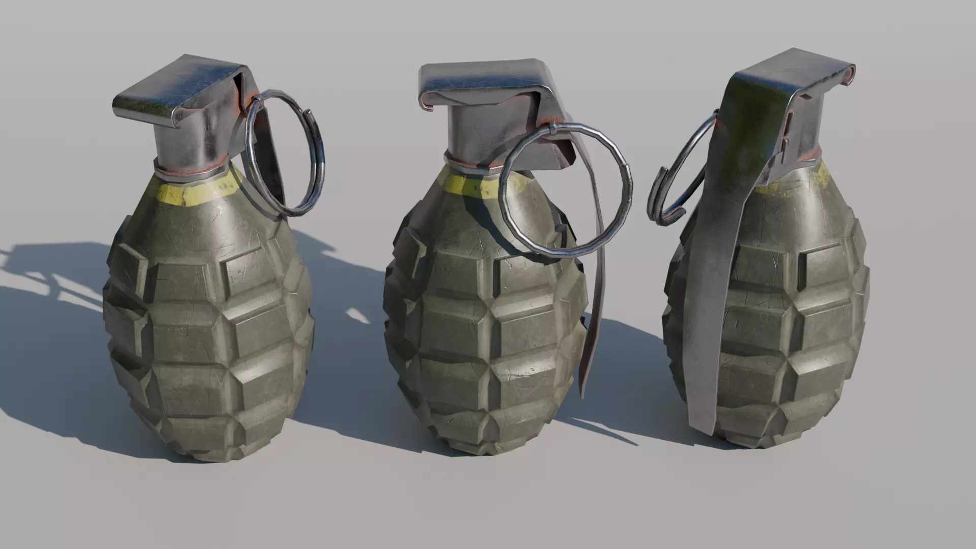 The Mk 2 grenade, also known as a pineapple grenade, was introduced by the US in 1918. It was standard issue during WW2, but also saw use during the Korean and Vietnam wars. The Mk 2 would eventually be phased out by the M26 series.PBR, game ready, low poly model with 2k and 4k textures.