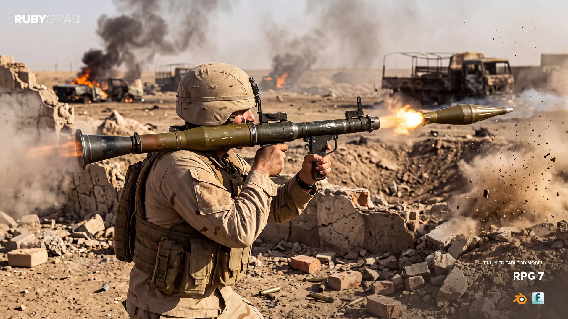RPG-7: A fully editable 3D model with exceptional detail, ideal for military-themed projects, games, and animations. Its realistic design makes it a great addition to any action or combat-focused scene!