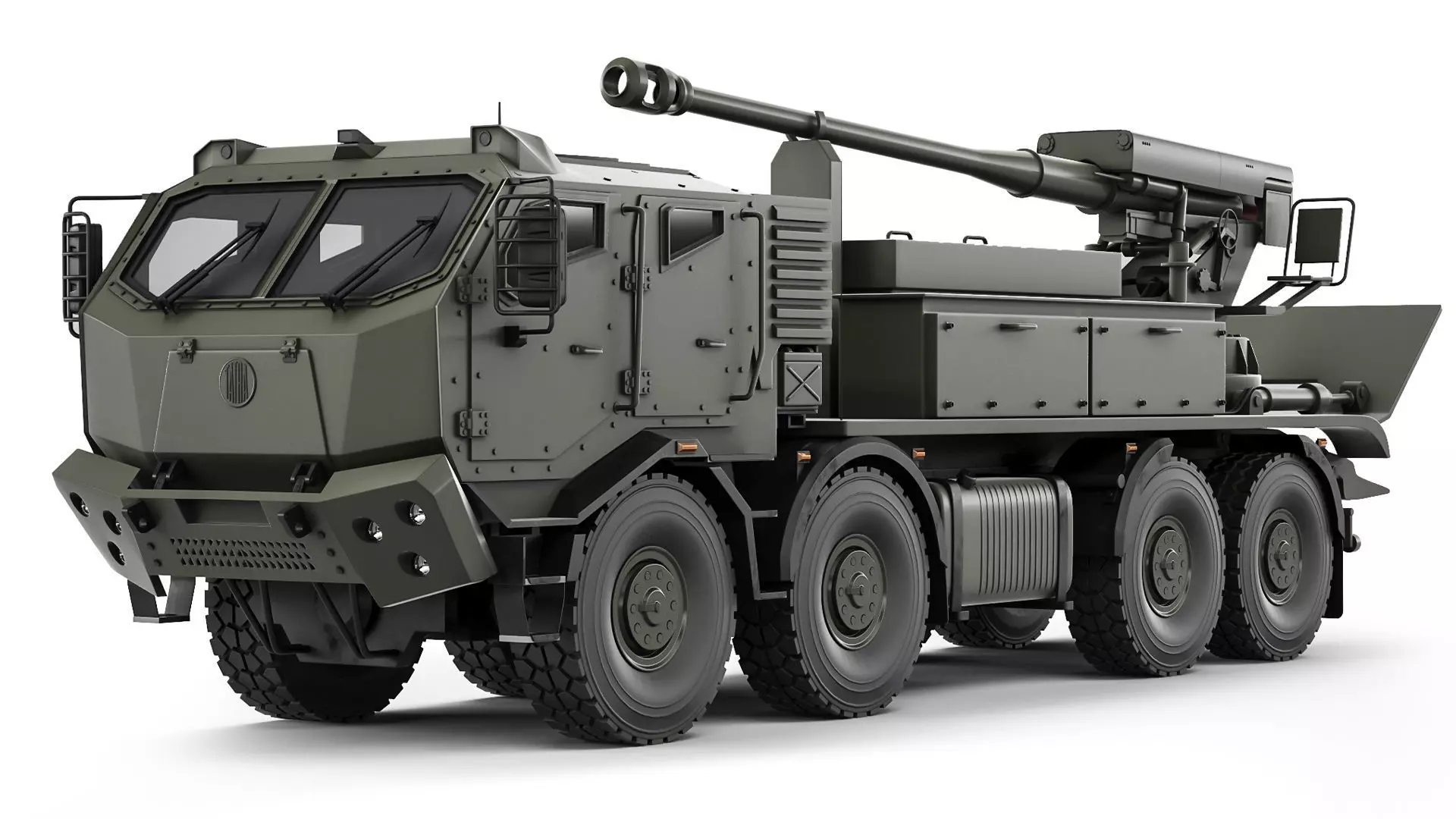 2S22 Bogdana - wheeled self-propelled howitzer with a 155 mm barrel. The main elements are prepared for TurboSmooth smoothing (2 Iteration). The body elements, wheels, equipment, and interior are worked out - conditionally.