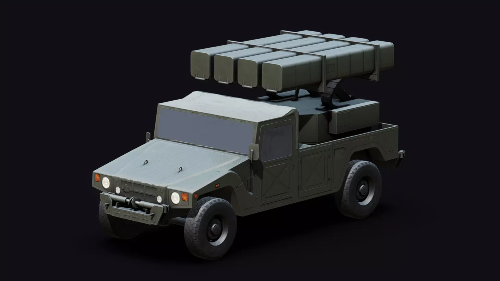 車両用マテリアルには、4K PBRテクスチャが適用されています。ガラスは個別のマテリアルで、テクスチャはありません。ドア、車輪、ロケットランチャー、およびロケットチューブのハッチは、それぞれ独立したオブジェクトとして作成されています。