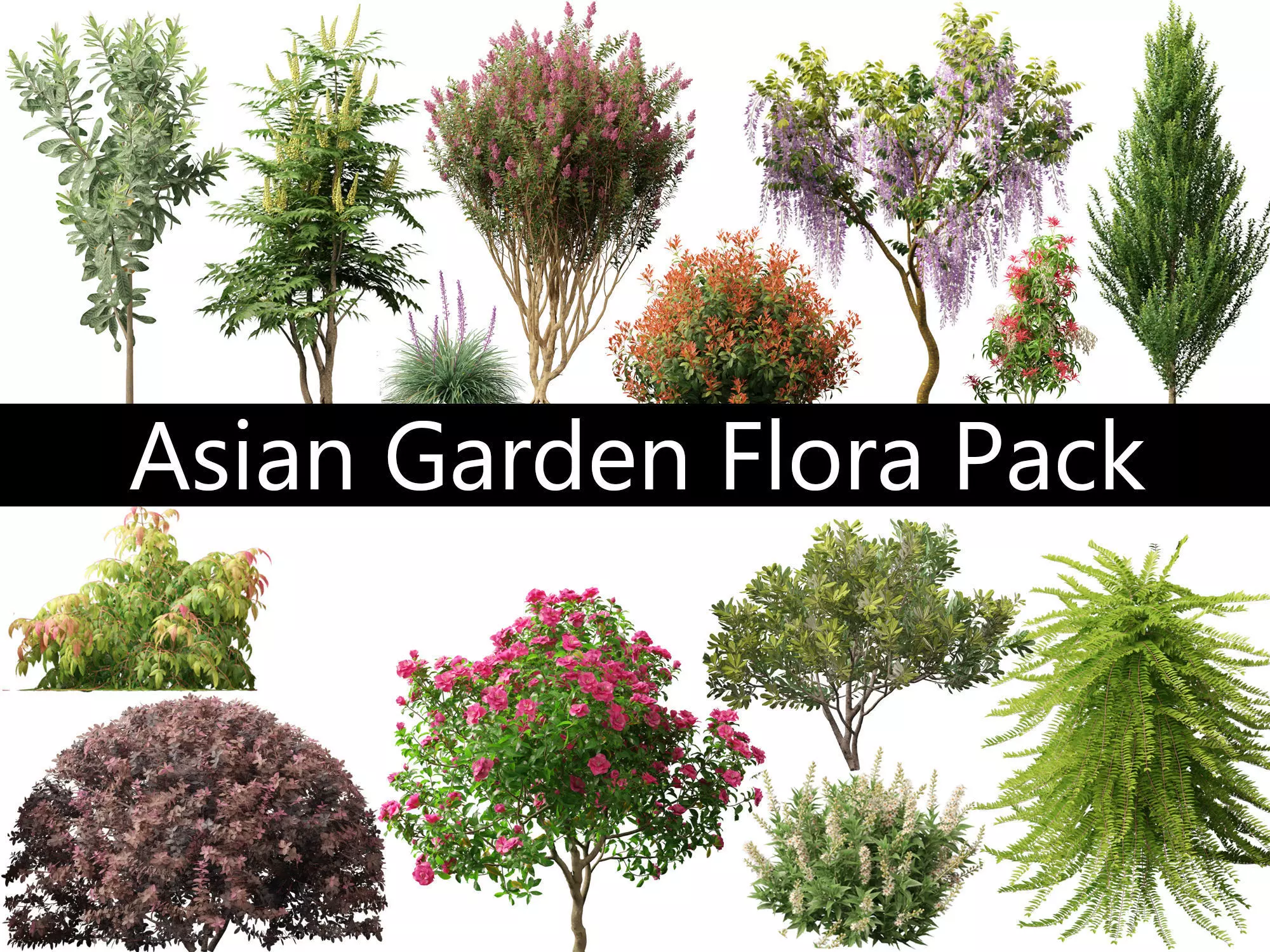 15 Species of Flowering Shrubs & Blossoms Pack,122 Models Included