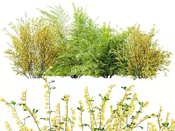 Enhance your natural landscape scenes with this high-quality Adiantum Capillus Veneris fern bush and Cytisus Scoparius flowering bush set. This collection combines the delicate, airy texture of maidenhair fern foliage with the vibrant yellow blossoms of broom shrubs, making it ideal for gardens, parks, countryside environments, and professional architectural visualizations requiring rich botanical variation.