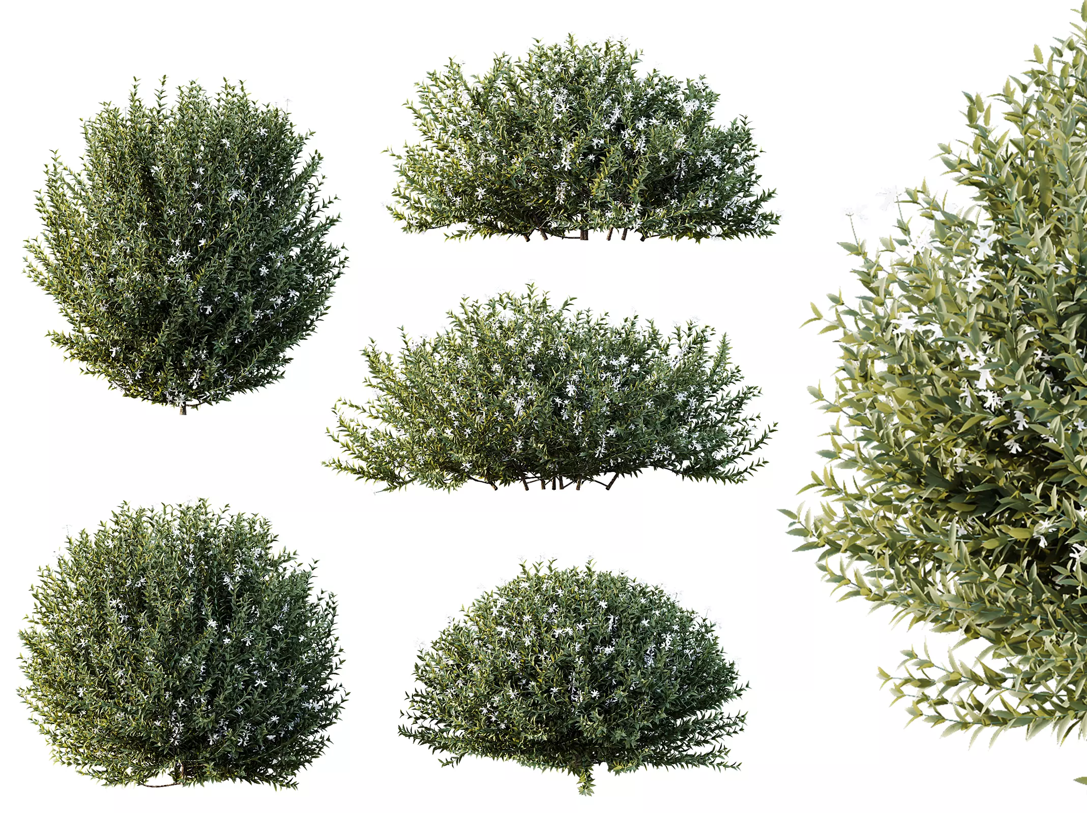 Native to the coastal regions of Australia, Westringia Fruticosa is a hardy evergreen shrub known for its fine, silvery-green foliage and delicate white star-shaped blossoms. This model set captures the plant’s natural growth patterns in various shapes — from compact mounds to wide, cascading bushes — ideal for creating realistic garden borders, hedges, and modern outdoor compositions.
