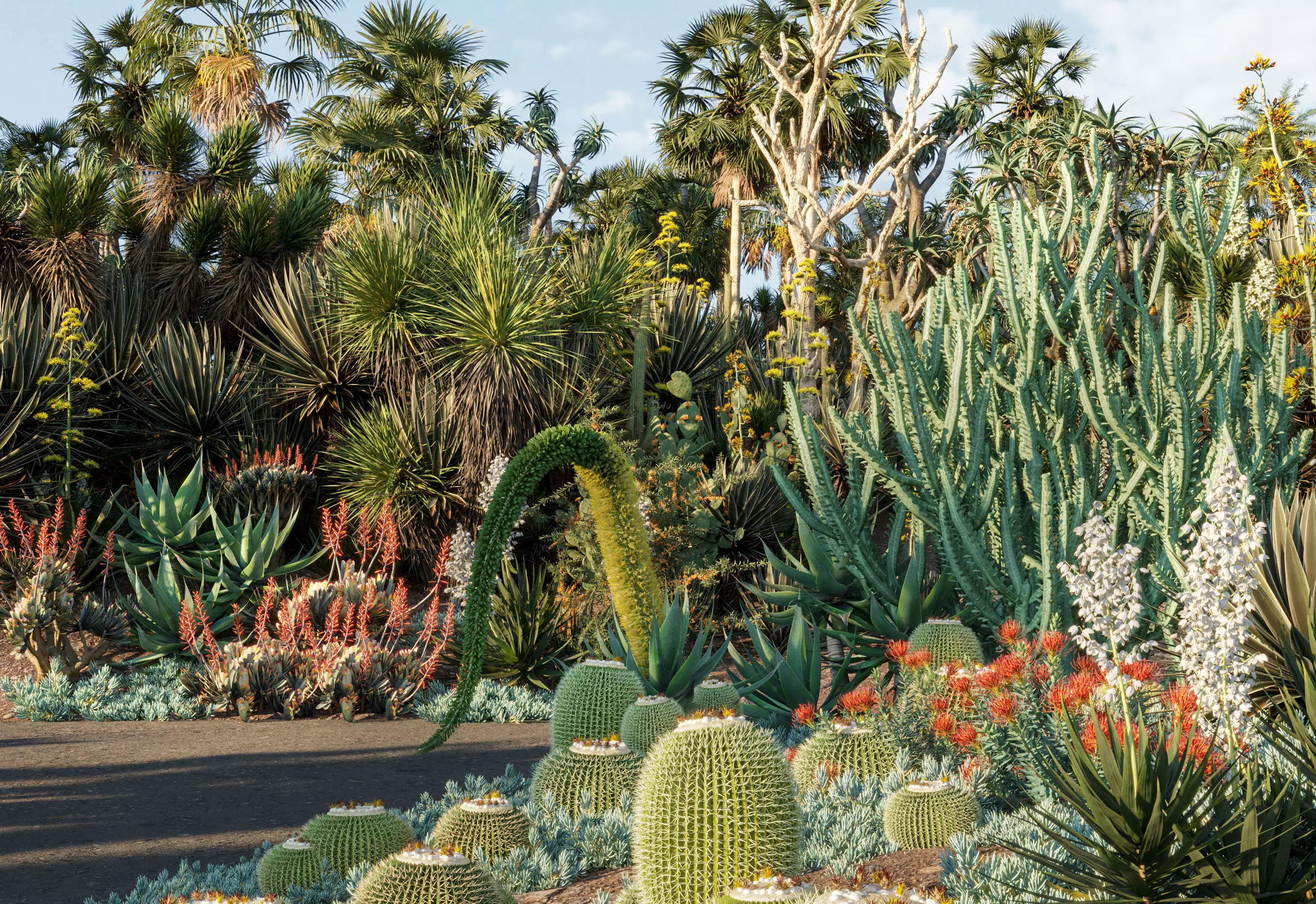 1.Agave angustifolia2.Agave attenuata3.Aloe pillansii4.Echinocactus grusonii5.Euphorbia trigona6.Erigeron karvinskianus7.Leucospermum8.Senecio mandraliscae9.Yucca brevifolia10.Yucca gloriosa