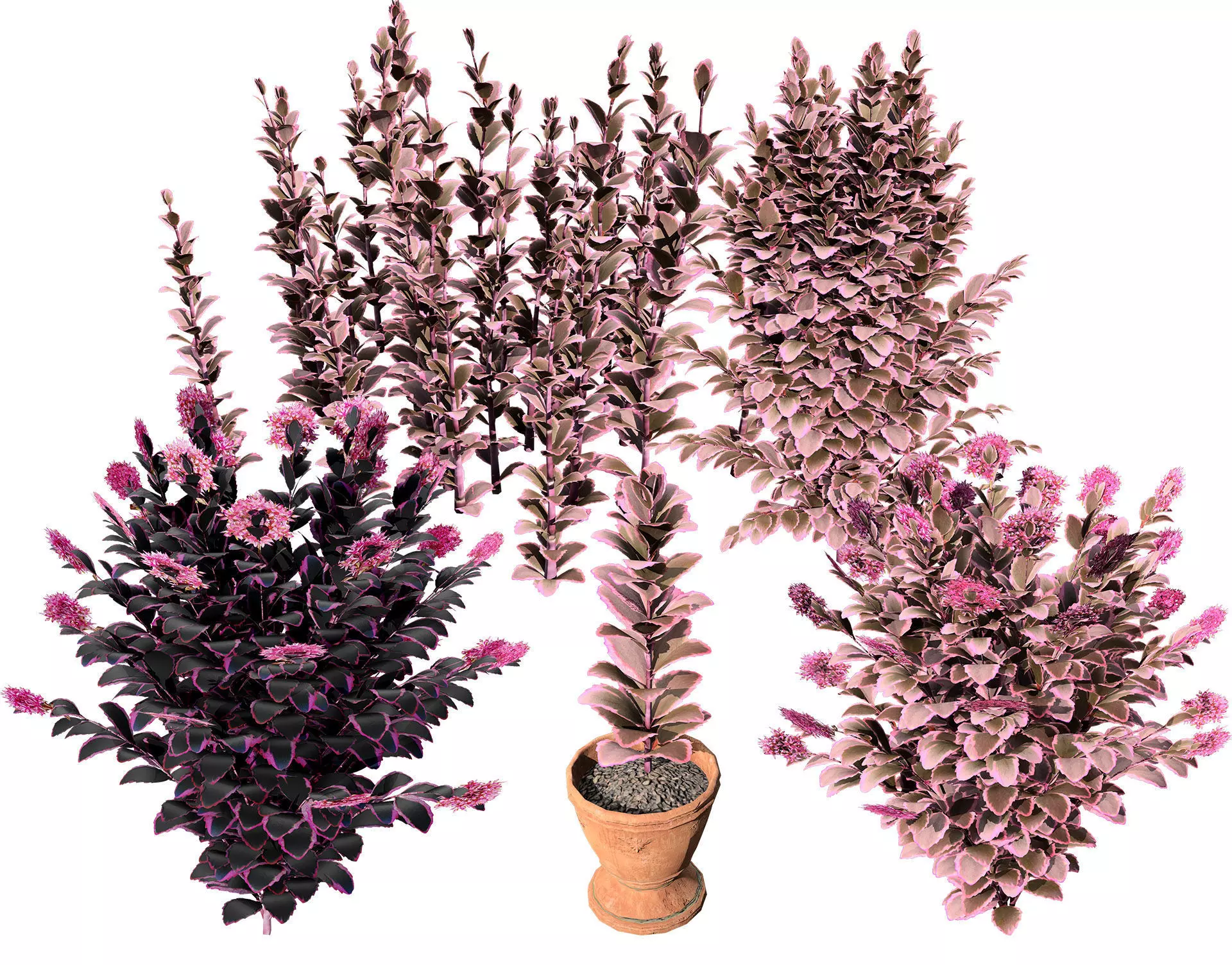 Elevate your outdoor 3D environments with this collection of meticulously modeled Dream Dazzler shrubs. These stunning plants feature a unique blend of pink and purple foliage, adding a touch of elegance and realism to your scenes. The models are available in various sizes and configurations, allowing for easy integration into your projects.