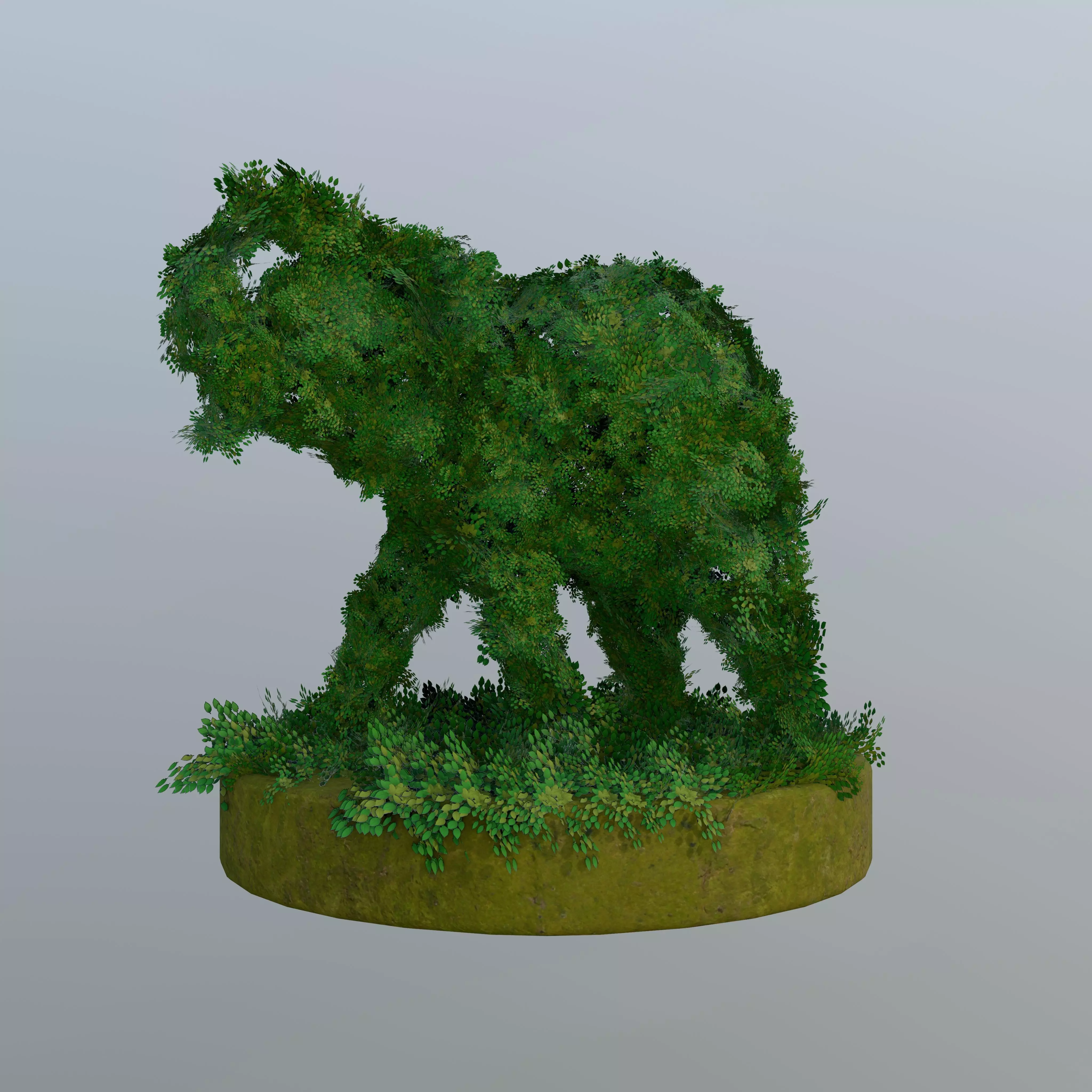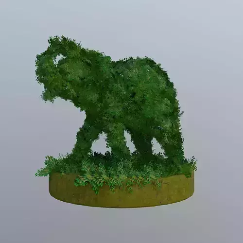 DescriptionThis 3D model depicts a large elephant-shaped topiary sculpture formed from dense green shrub foliage. The model captures the recognizable silhouette of an elephant, including the trunk, legs, and massive body structure, making it highly suitable as a decorative garden feature, park installation, or landscape design element.