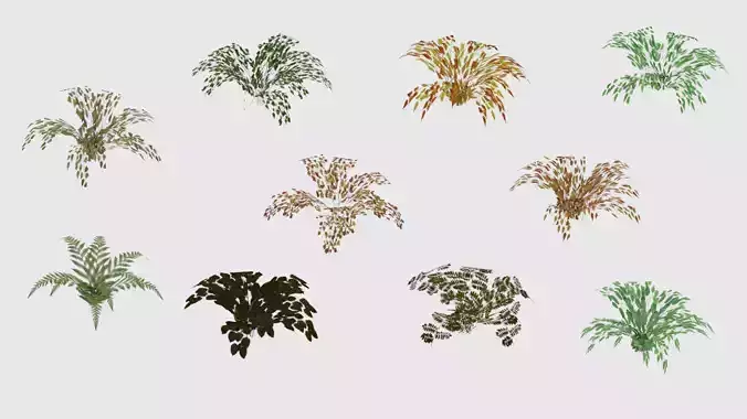 Low polygon model of a ground plant or fern. It comes with 9 textures.