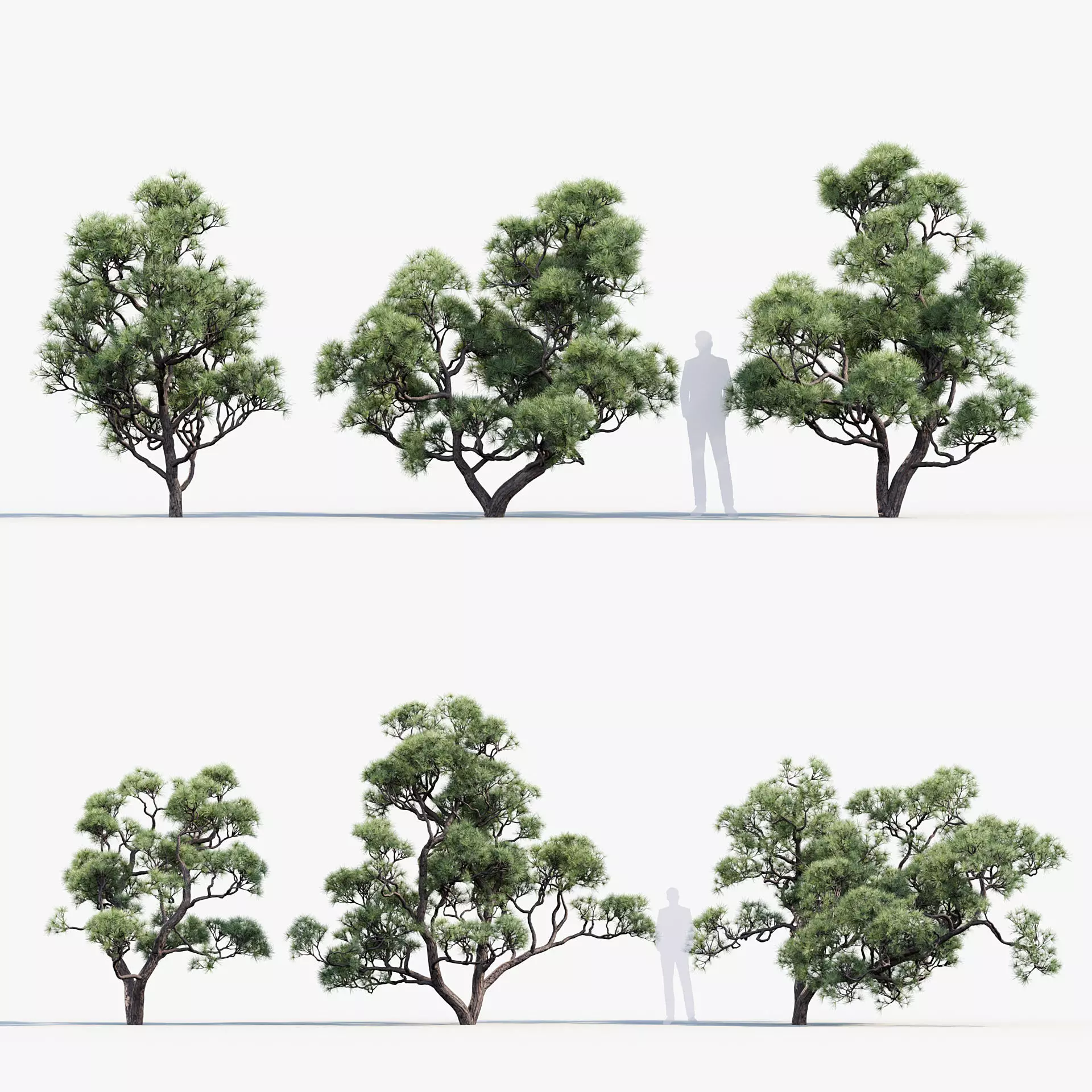 This product Pinus thunbergii - Japanese black pine comes in 6 unique 3D model variants with different heights, ages and forms to suit your production needs.