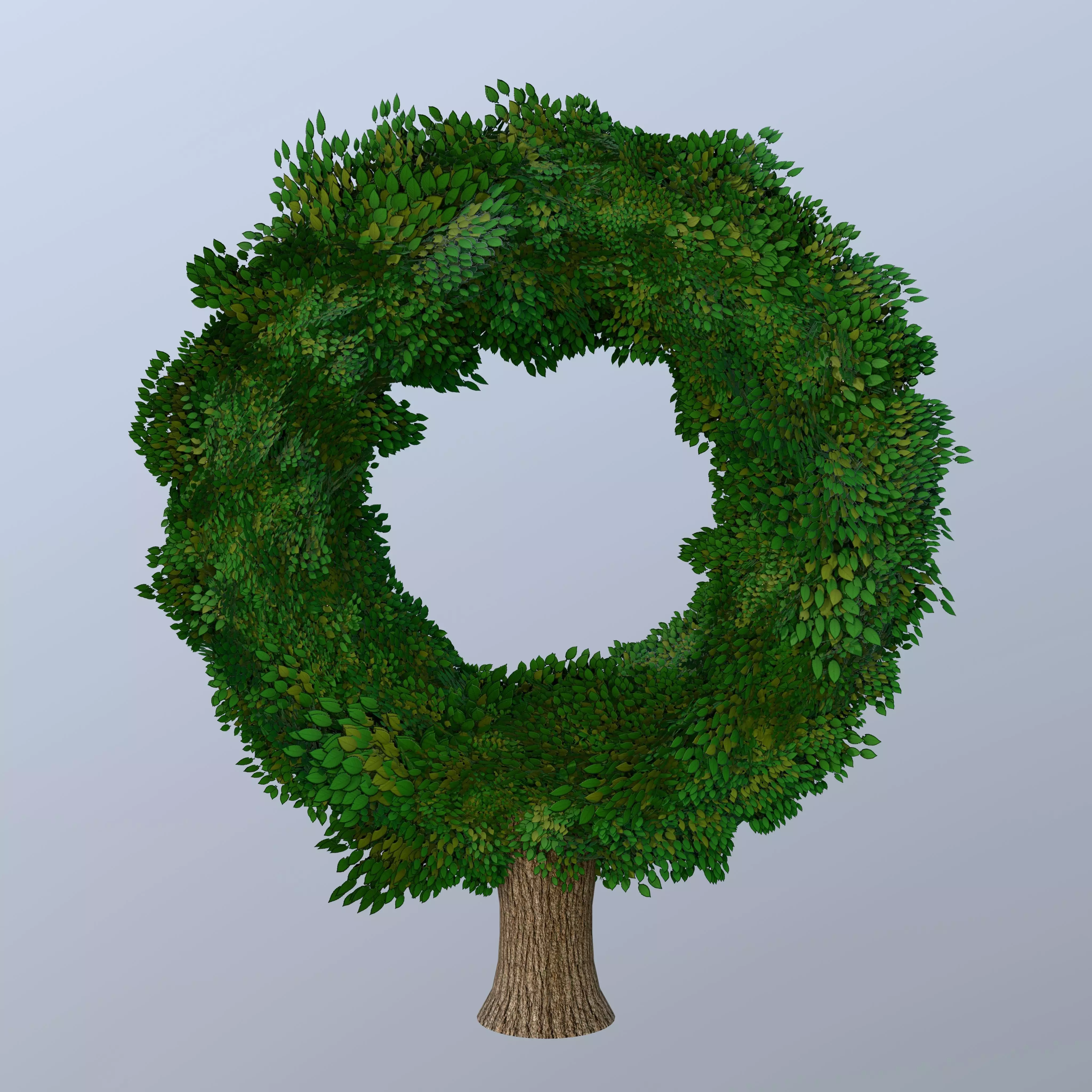 This 3D model features a realistic circular topiary tree with dense green foliage arranged in a clean ring shape and supported by a natural tree trunk. The combination of geometric form and organic leaf distribution makes this asset ideal for decorative gardens, parks, entrance designs, event environments, architectural visualization, and stylized outdoor scenes.The foliage maintains a consistent circular silhouette while preserving natural variation in leaf size and direction. PBR materials are included to ensure realistic surface response under different lighting conditions. Delivered in native Blender format, this model is suitable for rendering, animation, and environment design workflows.