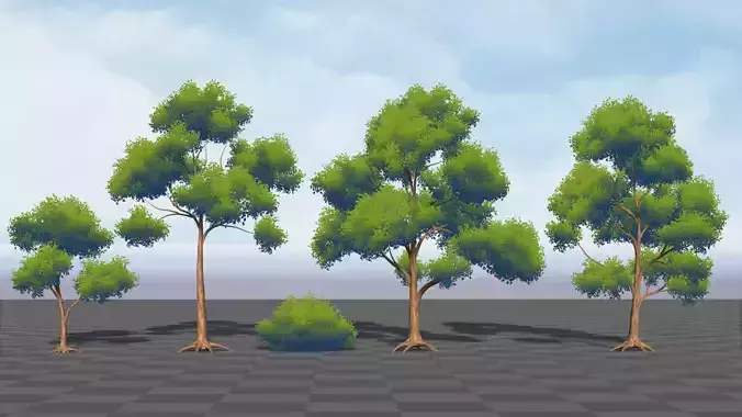 Each tree features a unique silhouette and foliage structure to avoid repetition in scenes. The colors are soft, natural, and well-balanced, ensuring the assets blend beautifully in daylight and stylized environments. All assets are game-ready, optimized, and easy to use for environment creation.