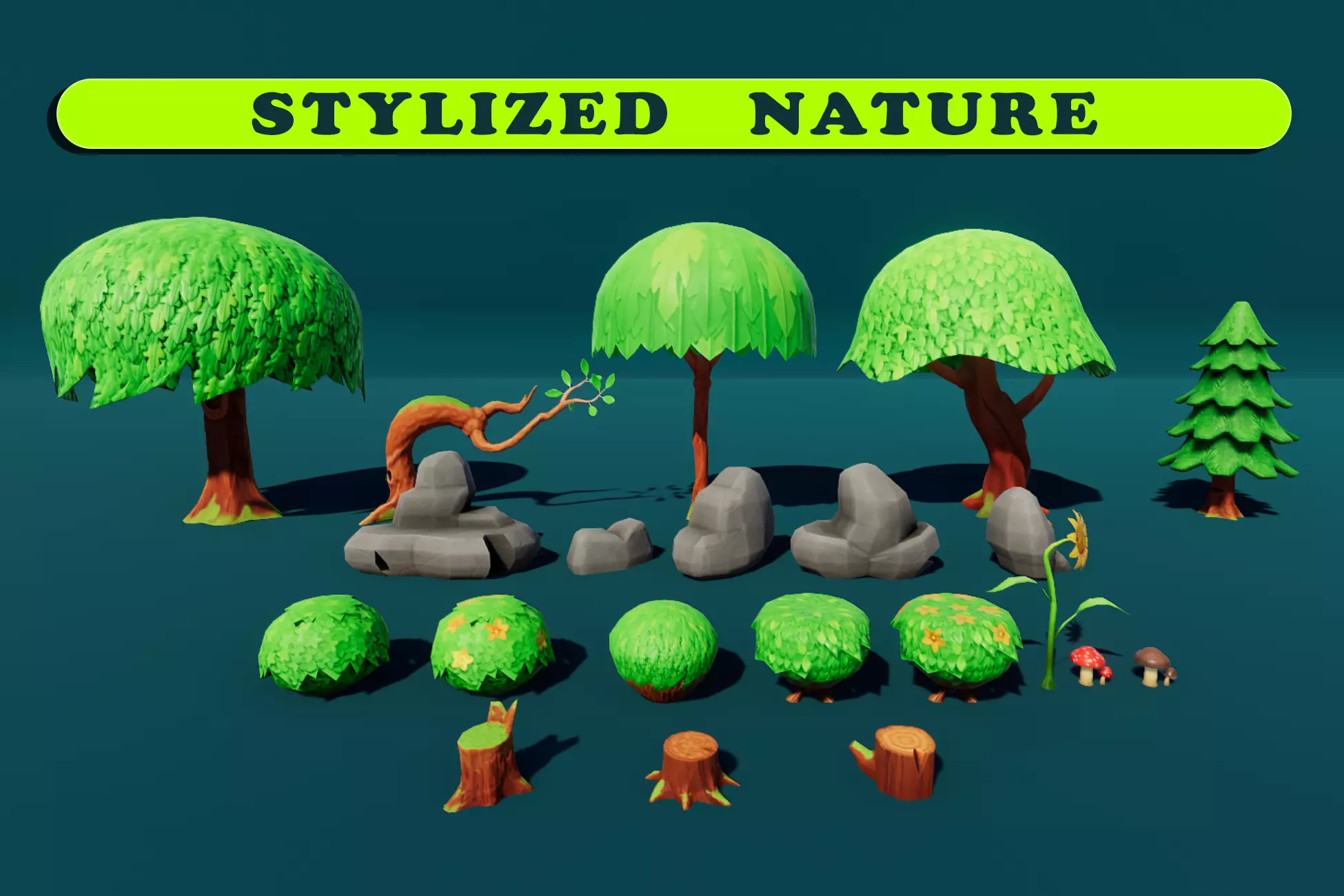 • 3 trees, 3 bushes, 5 stones, 1 mushrum, 1 sunflower