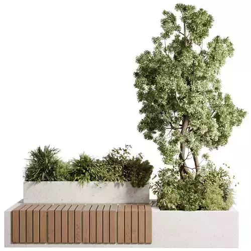 • Urban Environment - Urban Furniture Bench with Plants Set 64 3D model
