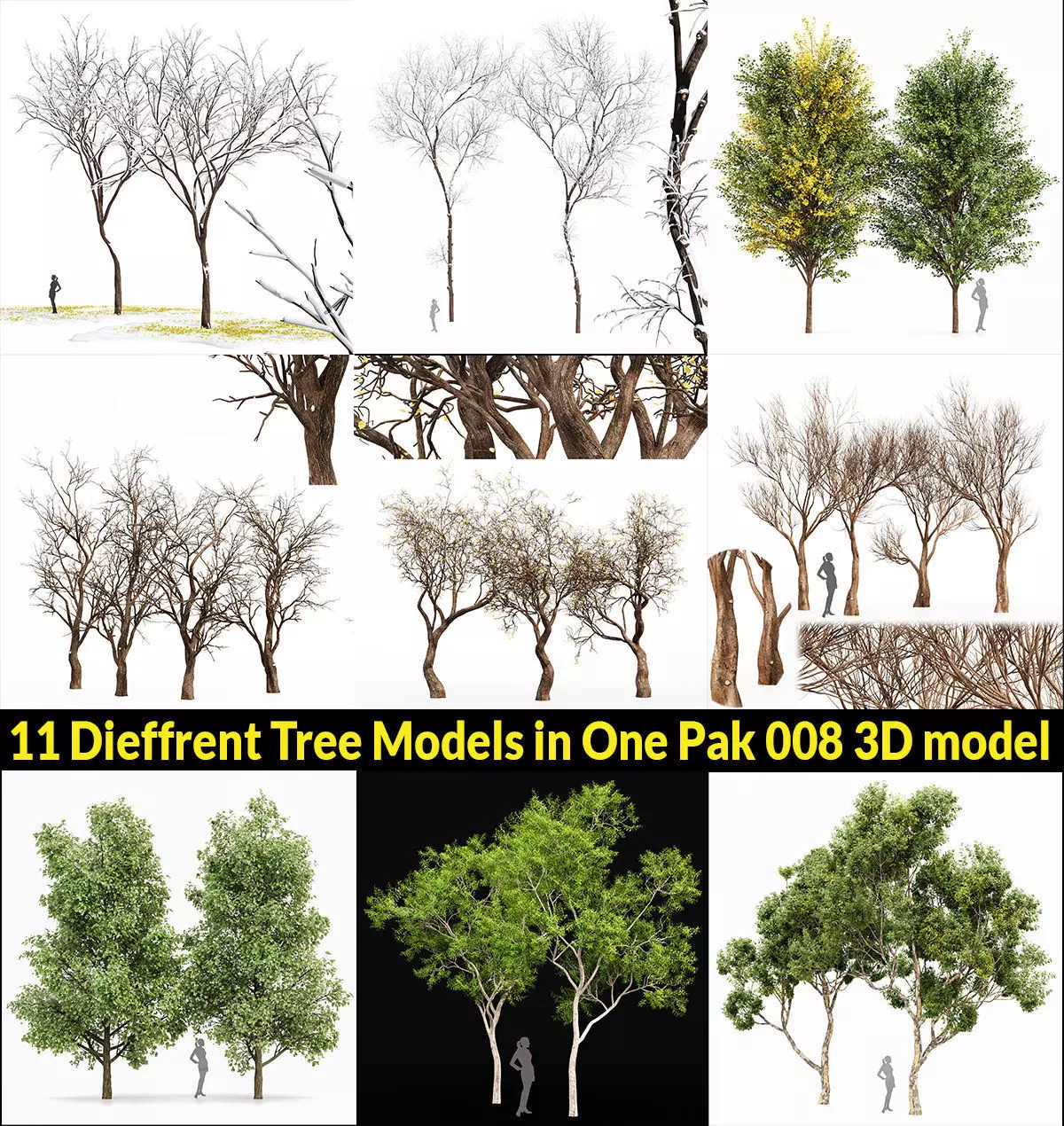 11 Dieffrent Tree Models in One Pak 008 3D model