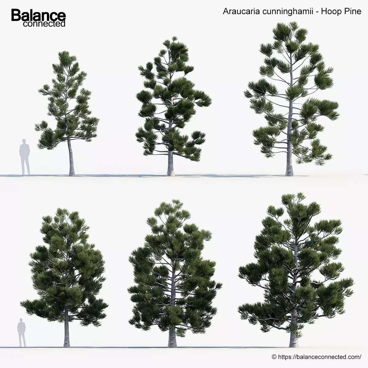 This product Araucaria cunninghamii - Hoop Pine 6 unique 3D model variations with different heights, ages and forms of the species available for your production needs. We are sure our “ready to import and render” products will help you with production efficiencies and effectively.