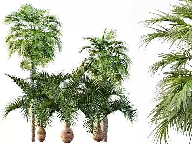 Bring the beauty of tropical landscapes into your exterior visualizations with this premium set of Sabal Palmetto Cabbage Palms and Bottle Palms. Each tree is crafted with exceptional botanical accuracy—featuring organic trunk structures, meticulously layered palm fronds, and natural crown formations that capture the authentic feel of real-world tropical vegetation.