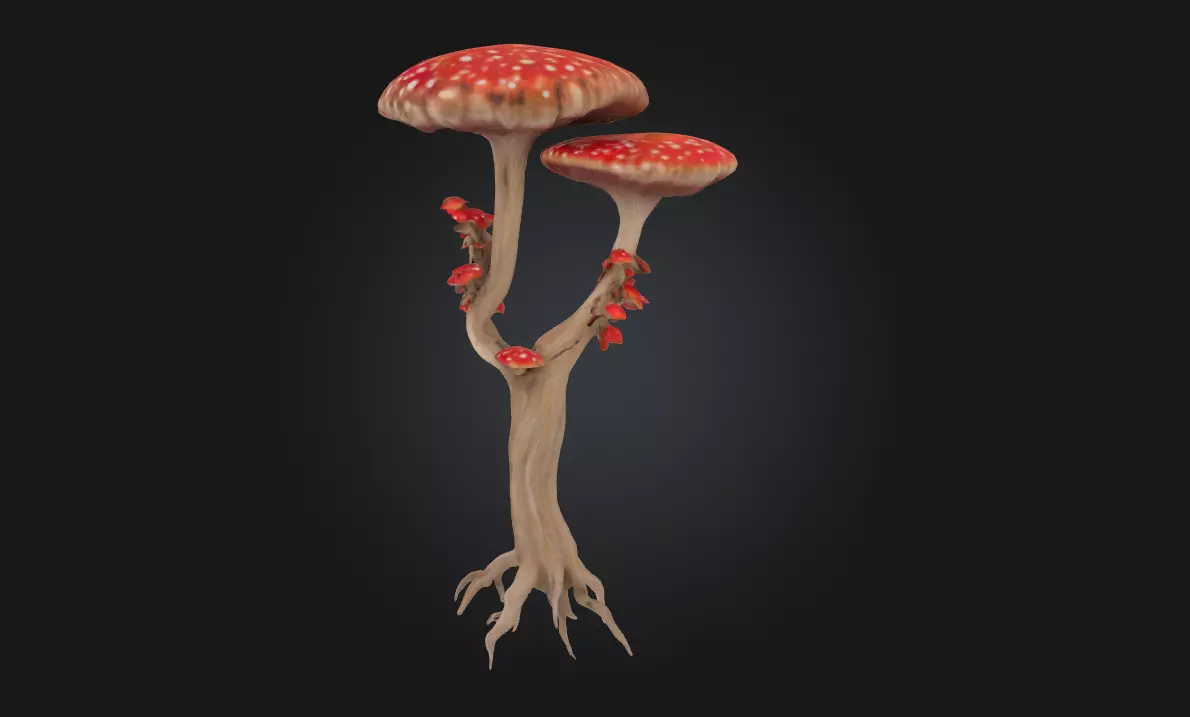 Enchanted Fungi Tree is a detailed 3D model featuring a whimsical tree covered in glowing mushrooms and twisted bark textures Perfect for enchanted forests, mystical landscapes, or fantasy game worlds