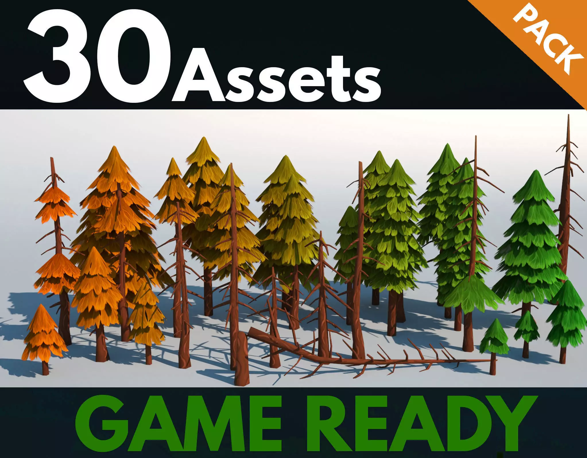 Low poly fir trees pack 03, ready for games.