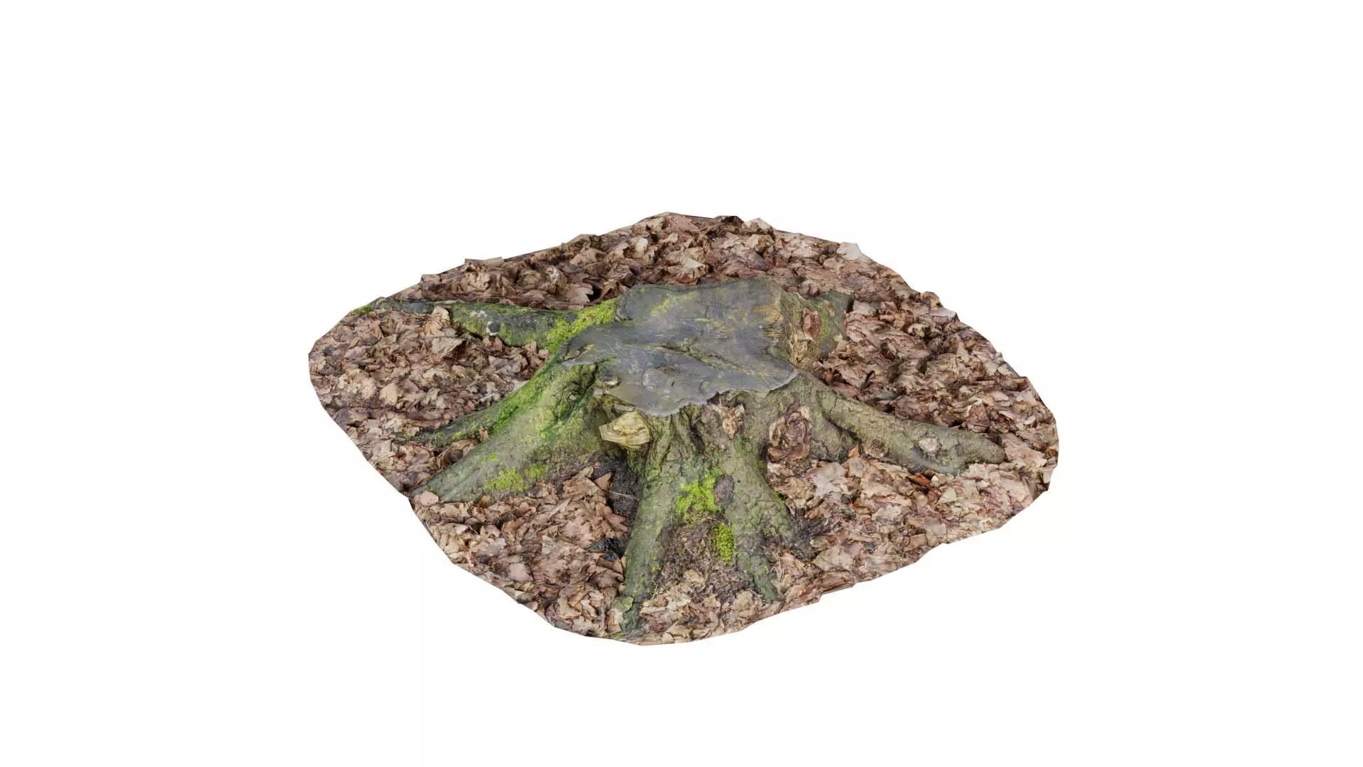 3D scanned model featuring a tree stump sitting on top of a rock. This model, mini moss stump in leaves, has been created using photogrammetry from a real world object.The raw scan data has been cleaned, retopologized and UV-unwrapped using Zbrush. The result is a low poly mesh with baked maps. The .obj and .mtl are configured so that maps will load automatically in the shader (tested in Blender). In addition, a Blender scene is provided with the model and shader already set up for rendering and export. Detailed information below: